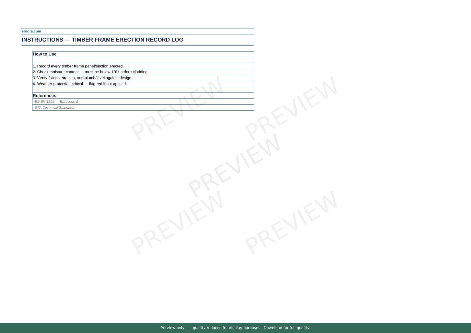 Free Excel template: Timber Frame Erection Record Log. Download for UK construction sites.