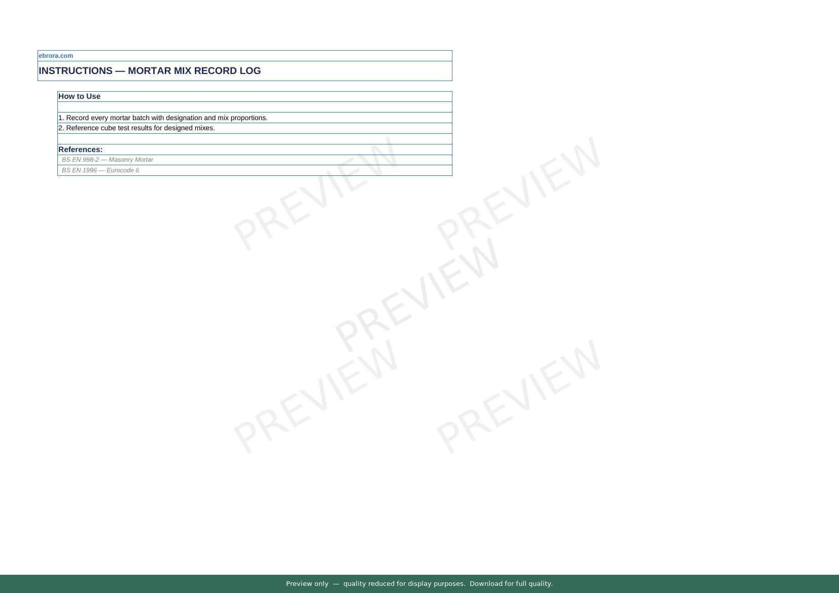 Free Excel template: Mortar Mix Record Log. Download for UK construction sites.