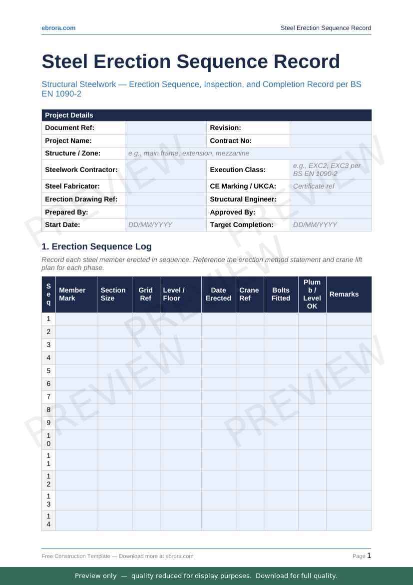 Free Word template: Steel Erection Sequence Record. Download for UK construction sites.