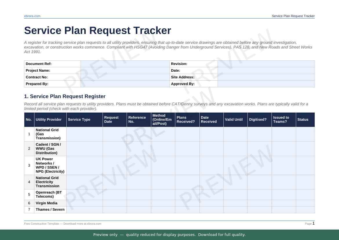 Free Word template: Service Plan Request Tracker. Download for UK construction sites.