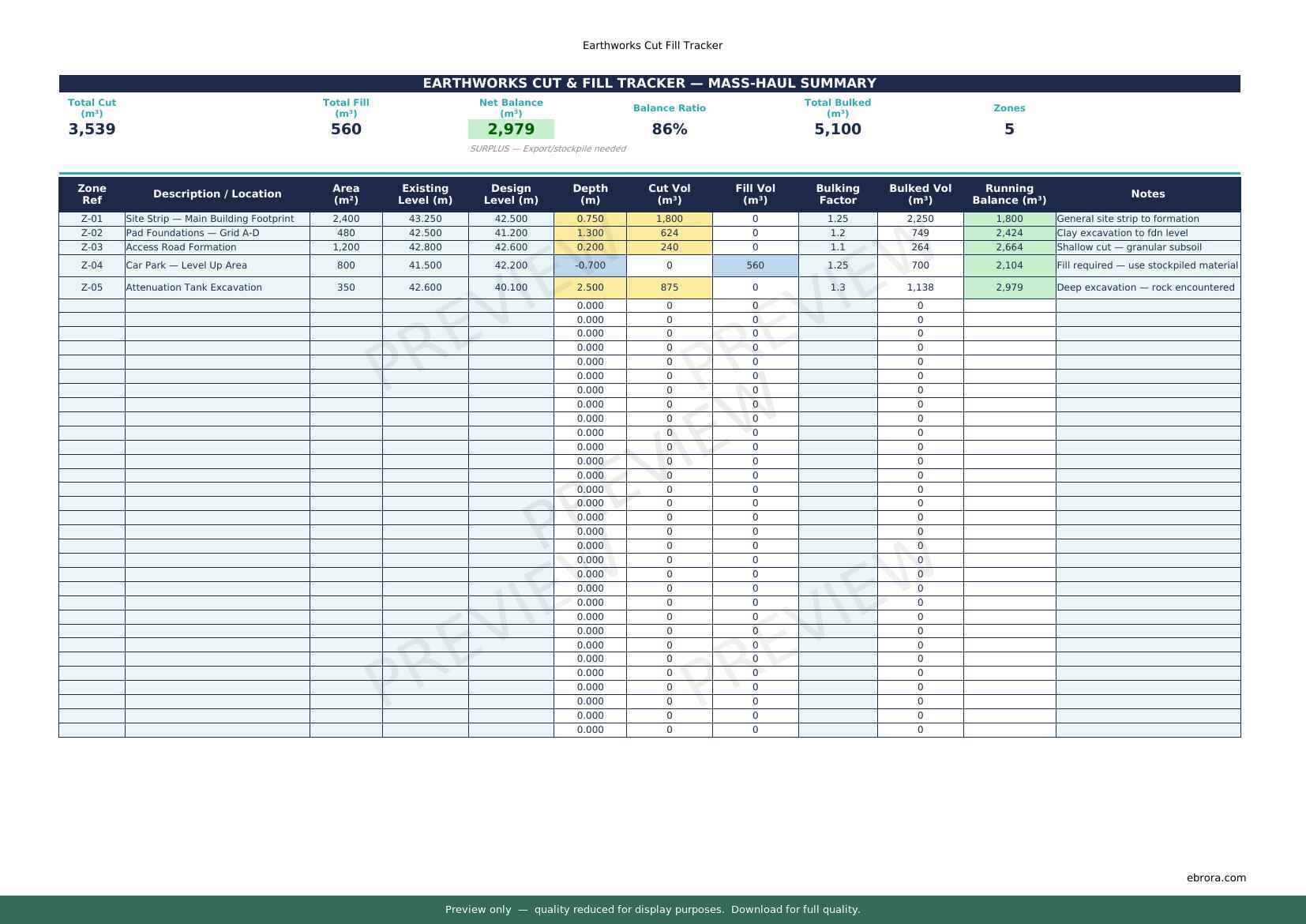 Free Excel template: Earthworks Cut Fill Tracker. Download for UK construction sites.