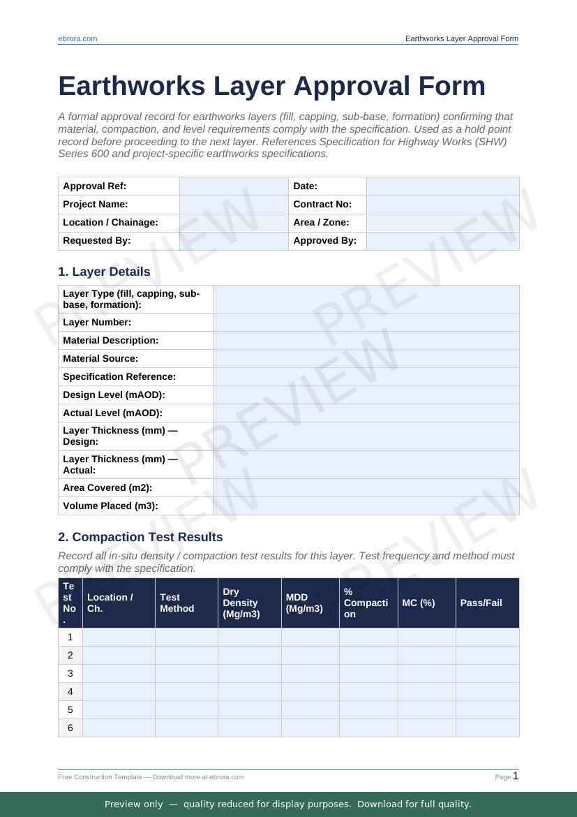 Free Word template: Earthworks Layer Approval Form. Download for UK construction sites.