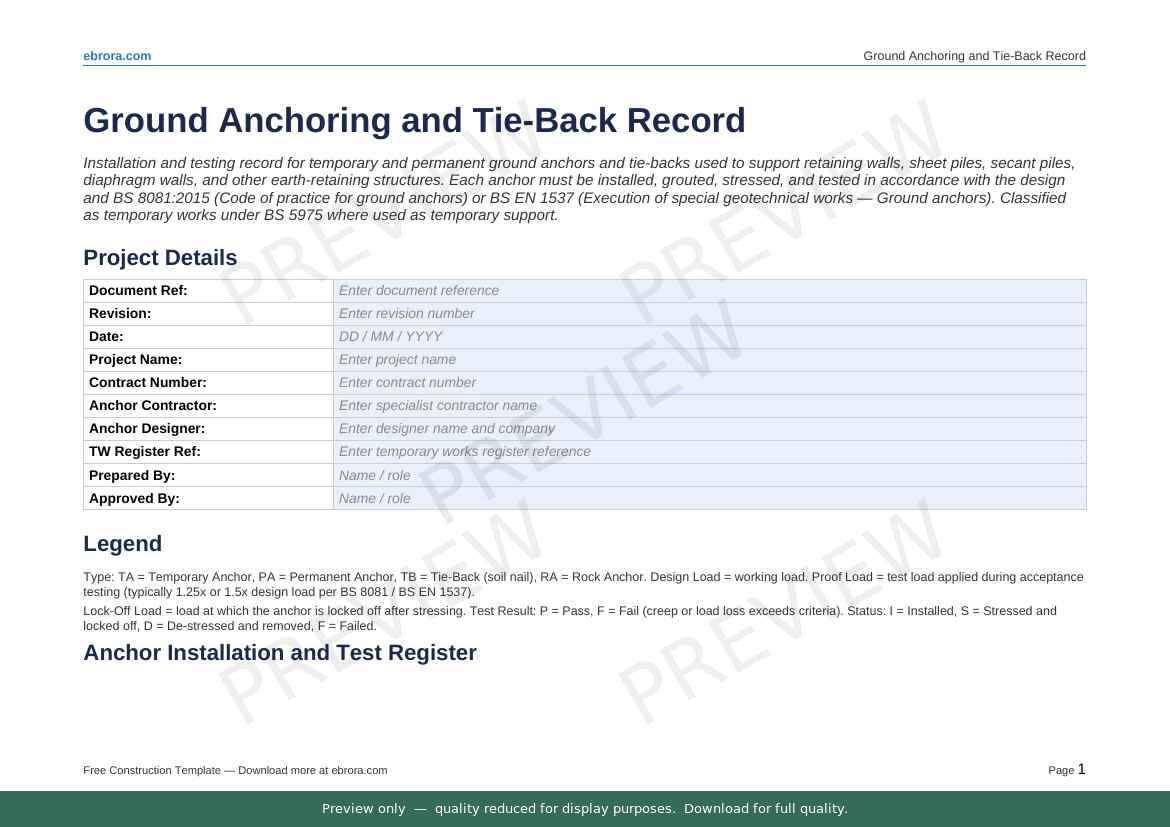 Free Word template: Ground Anchoring and Tie Back Record. Download for UK construction sites.