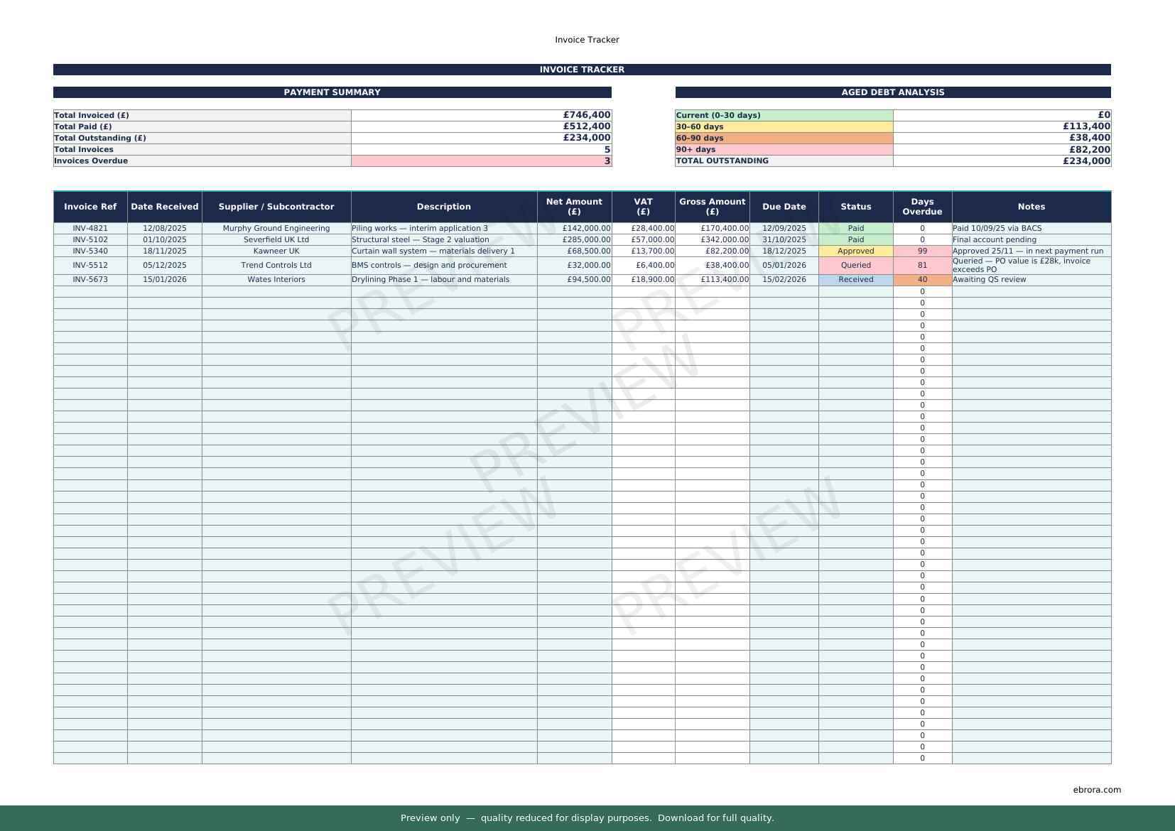 Free Excel template: Invoice Tracker. Download for UK construction sites.