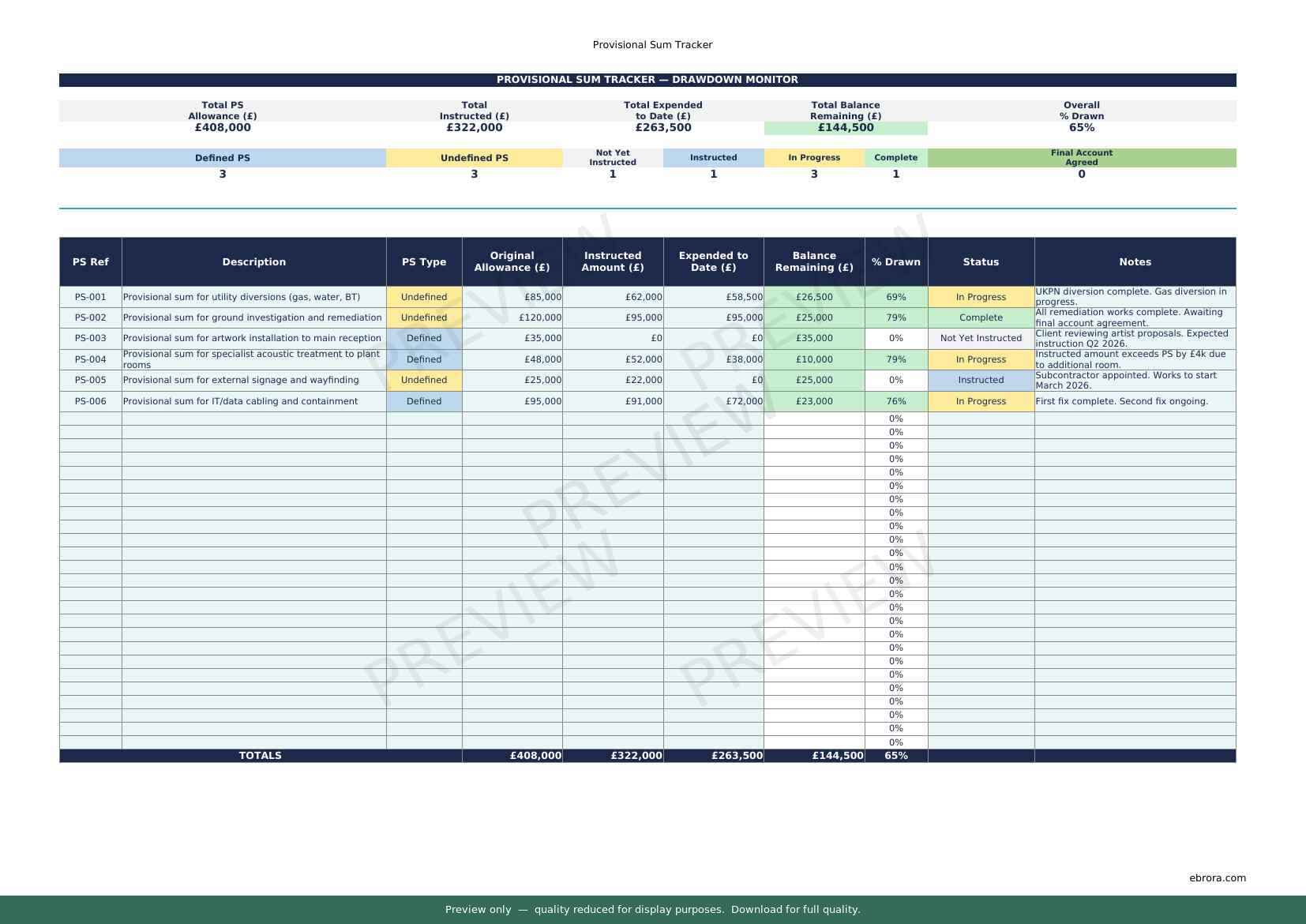 Free Excel template: Provisional Sum Tracker. Download for UK construction sites.