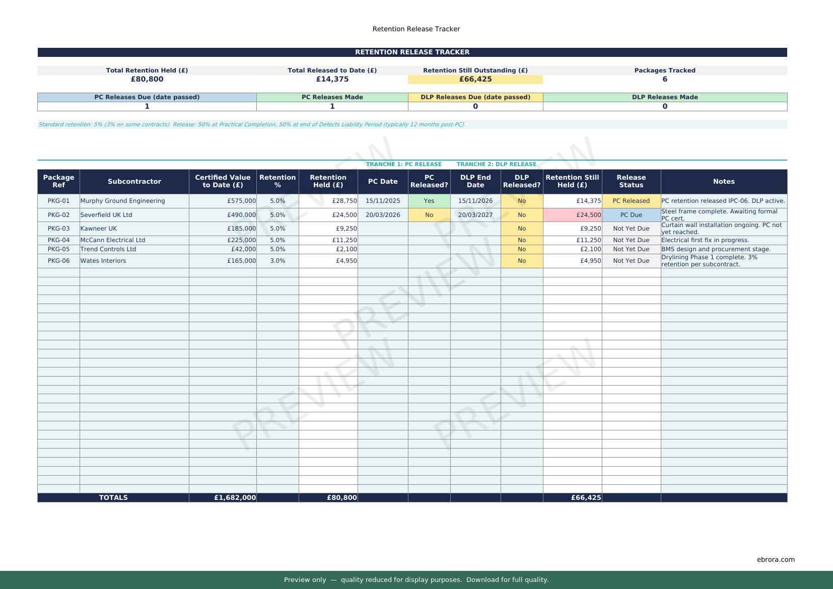 Free Excel template: Retention Release Tracker. Download for UK construction sites.