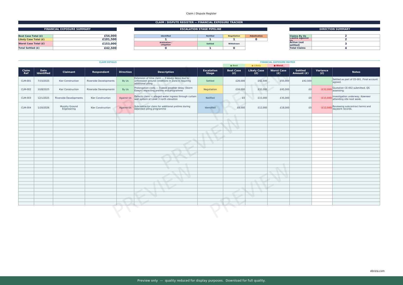 Free Excel template: Claim Dispute Register. Download for UK construction sites.