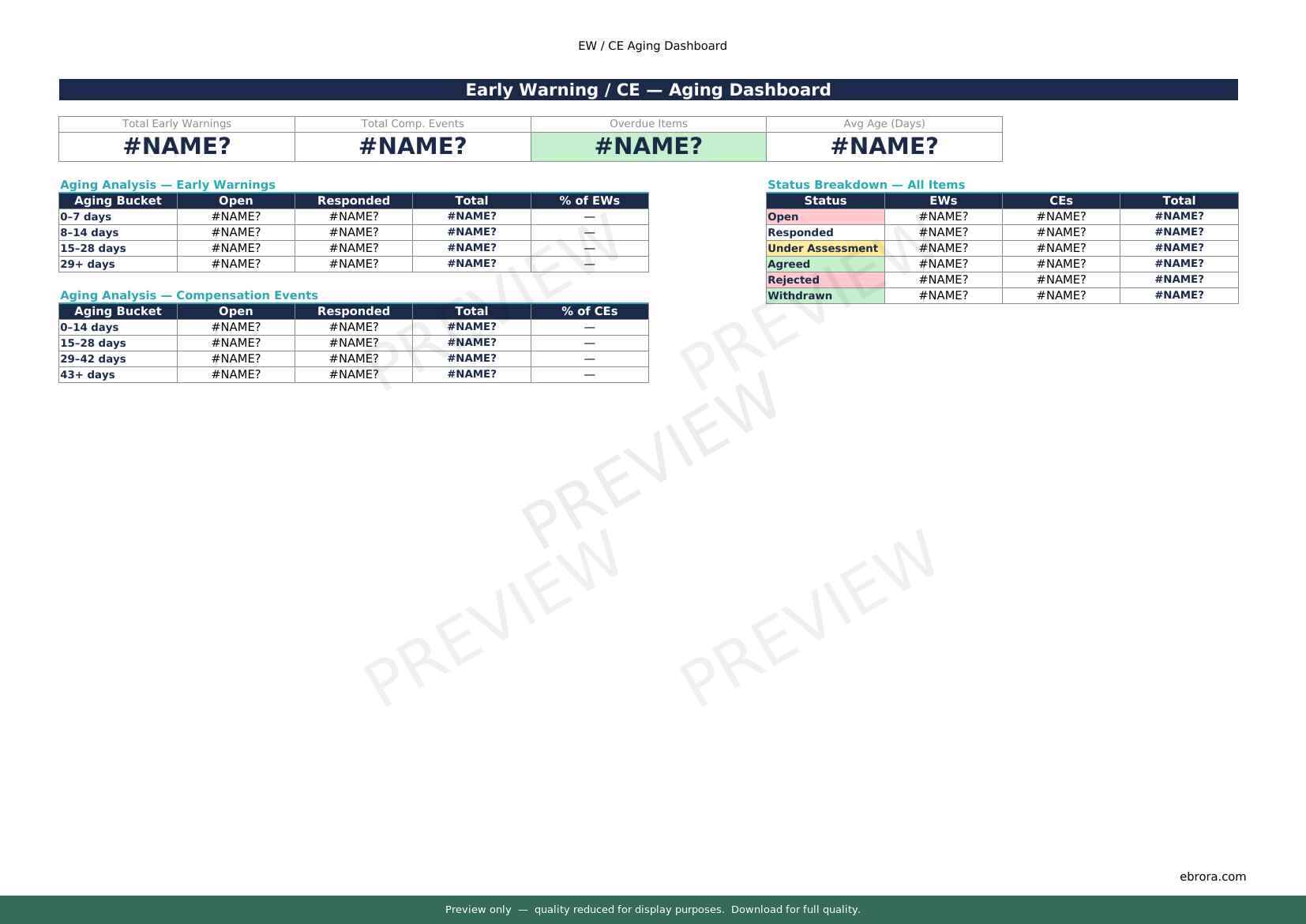 Free Excel template: Ew Ce Aging Dashboard. Download for UK construction sites.