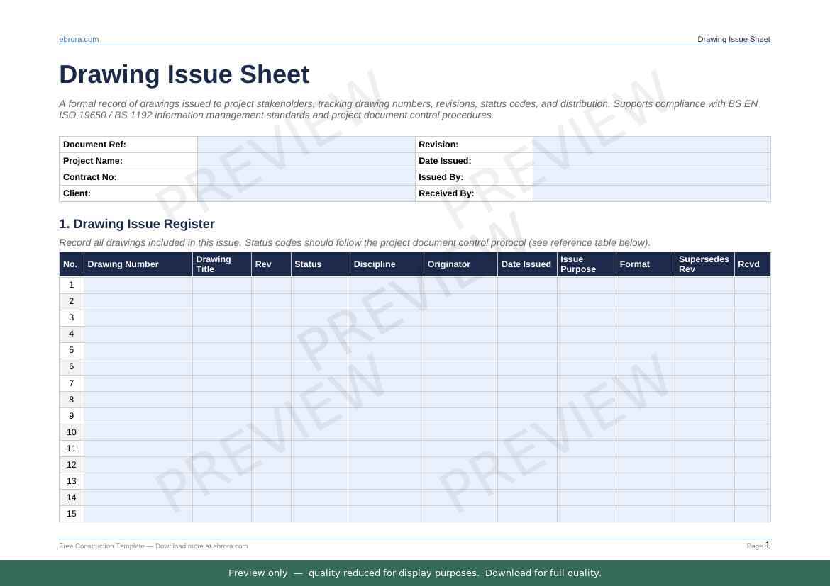 Free Word template: Drawing Issue Sheet. Download for UK construction sites.