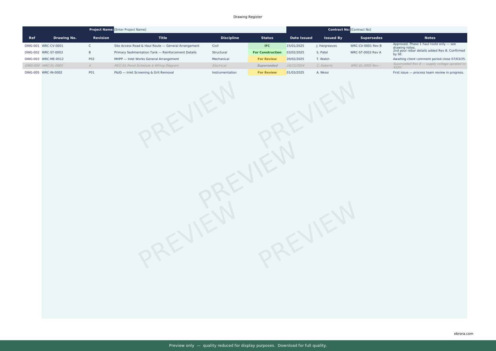 Free Excel template: Drawing Register. Download for UK construction sites.