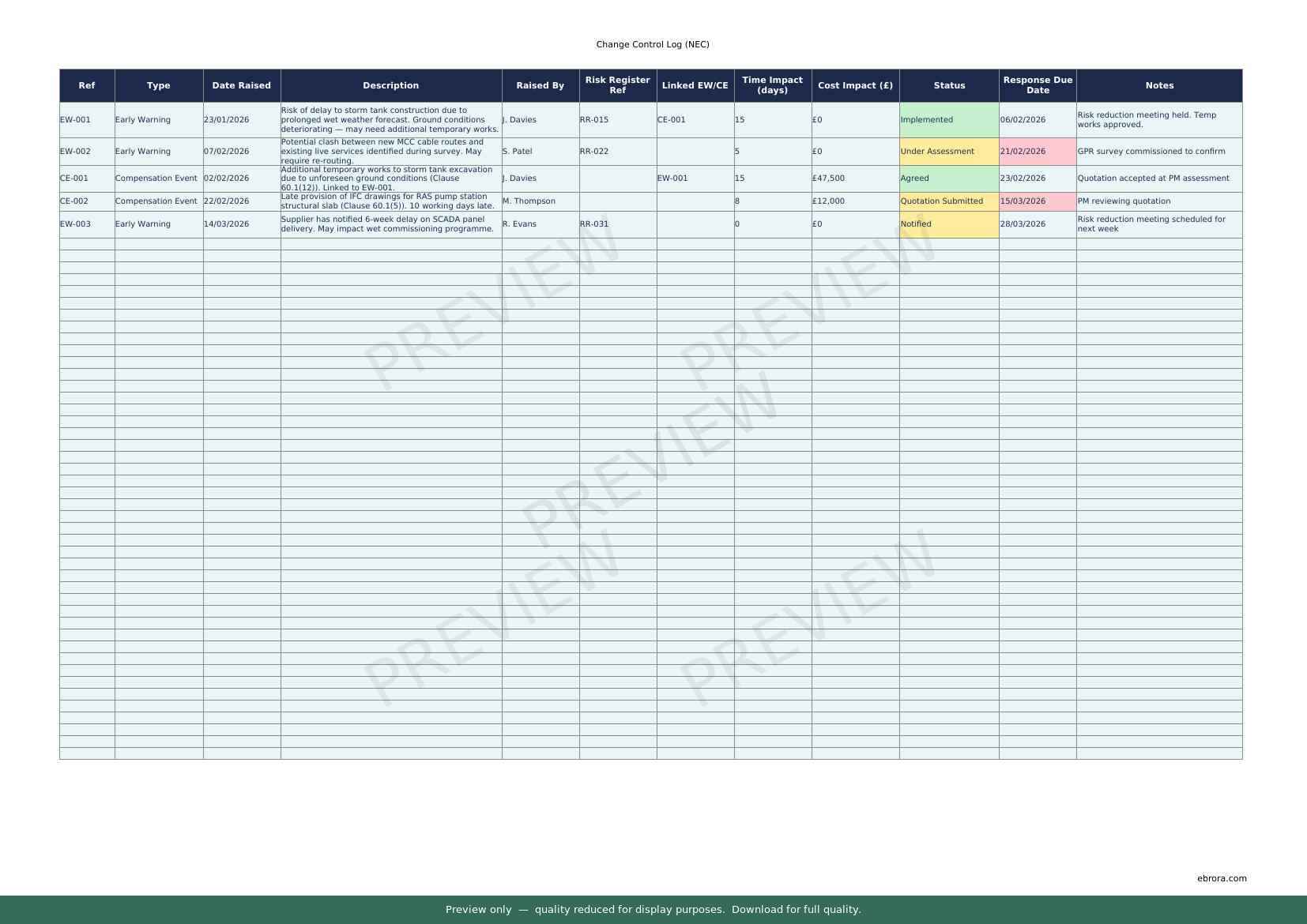 Free Excel template: Change Control Log. Download for UK construction sites.