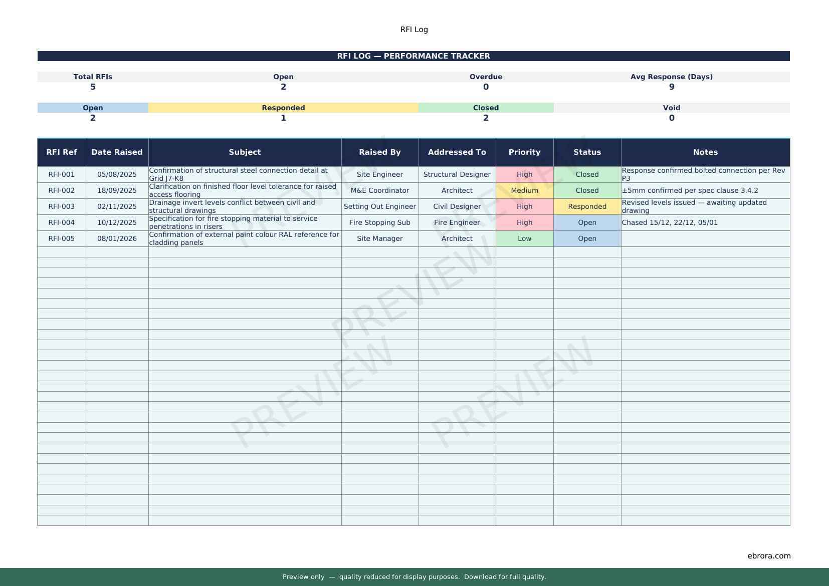 Free Excel template: Rfi Log. Download for UK construction sites.