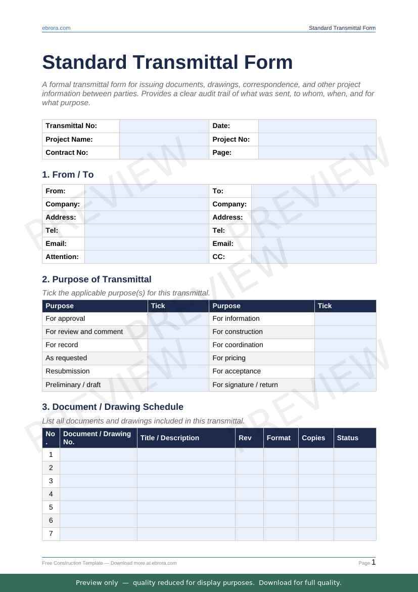 Free Word template: Standard Transmittal Form. Download for UK construction sites.