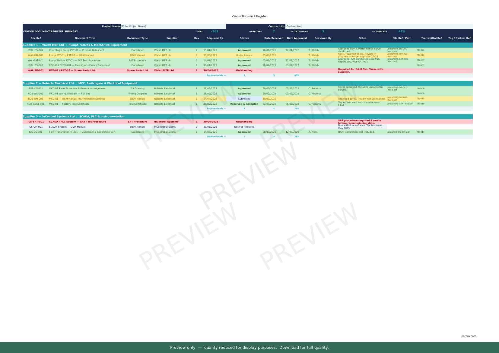 Free Excel template: Vendor Document Register. Download for UK construction sites.