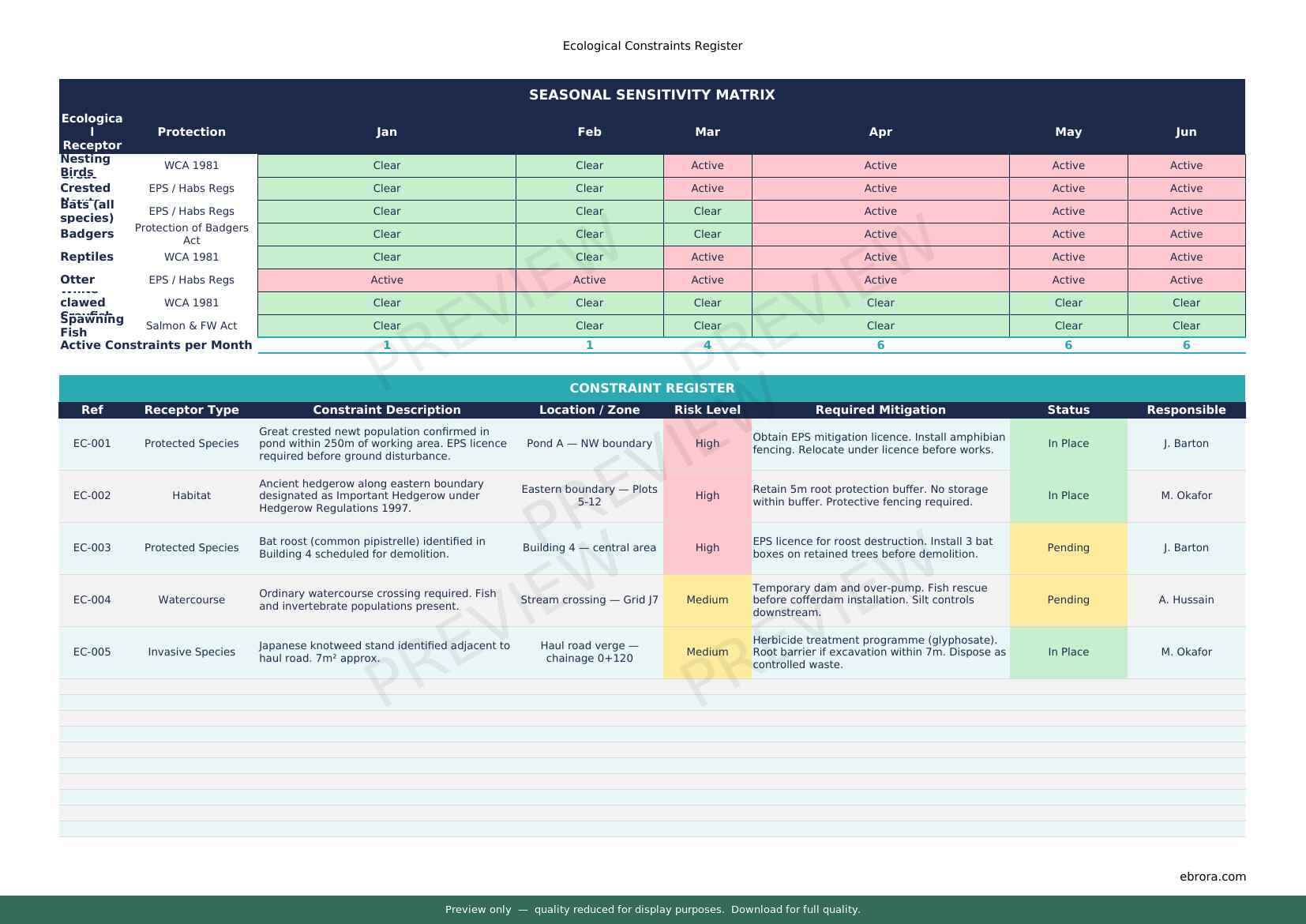 Free Excel template: Ecological Constraints Register. Download for UK construction sites.