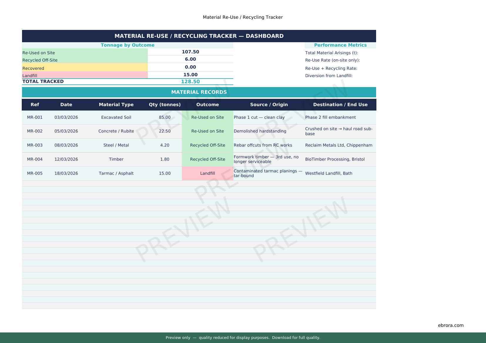 Free Excel template: Material Reuse Recycling Tracker. Download for UK construction sites.