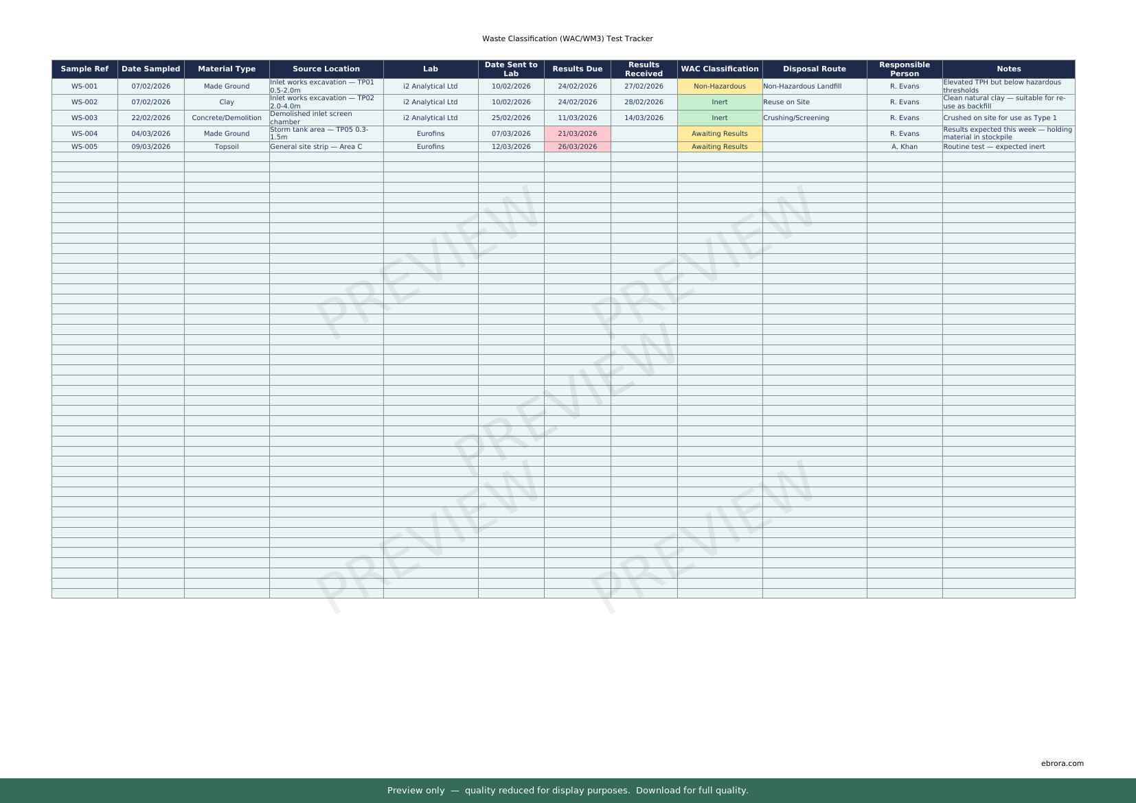 Free Excel template: Waste Classification Test Tracker. Download for UK construction sites.