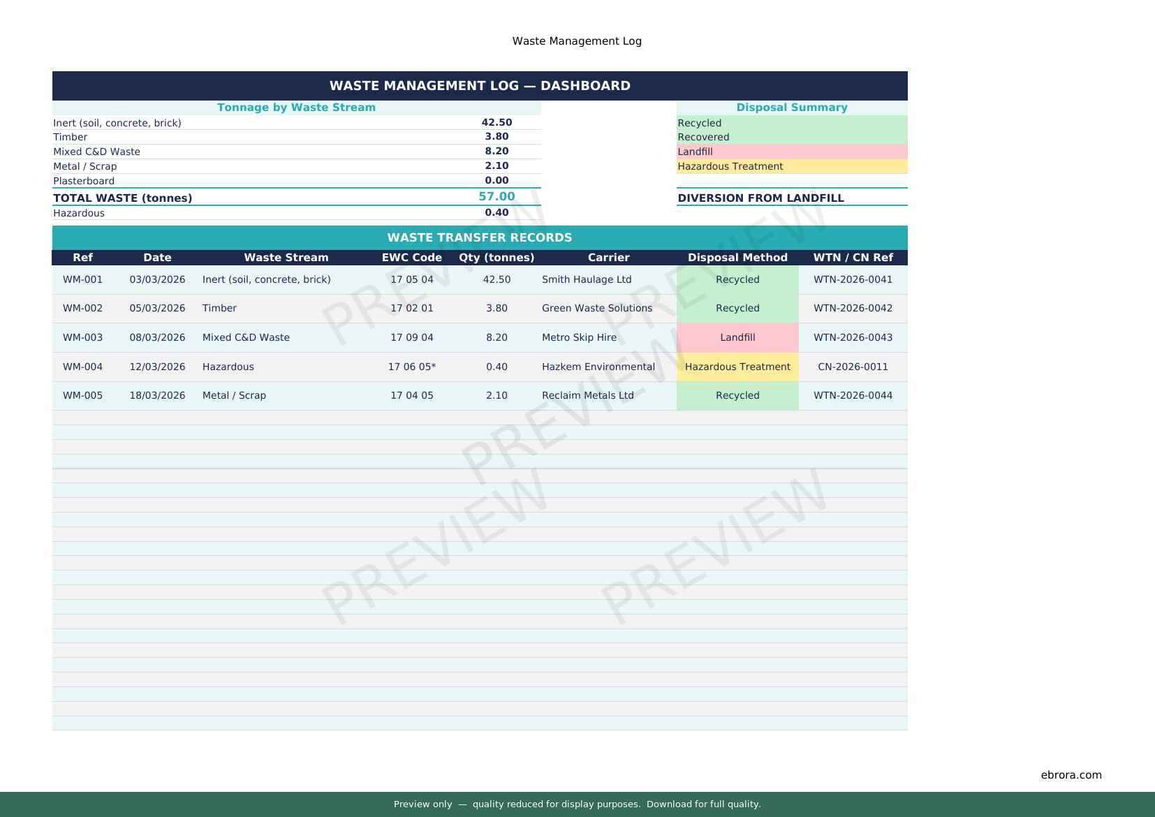 Free Excel template: Waste Management Log. Download for UK construction sites.