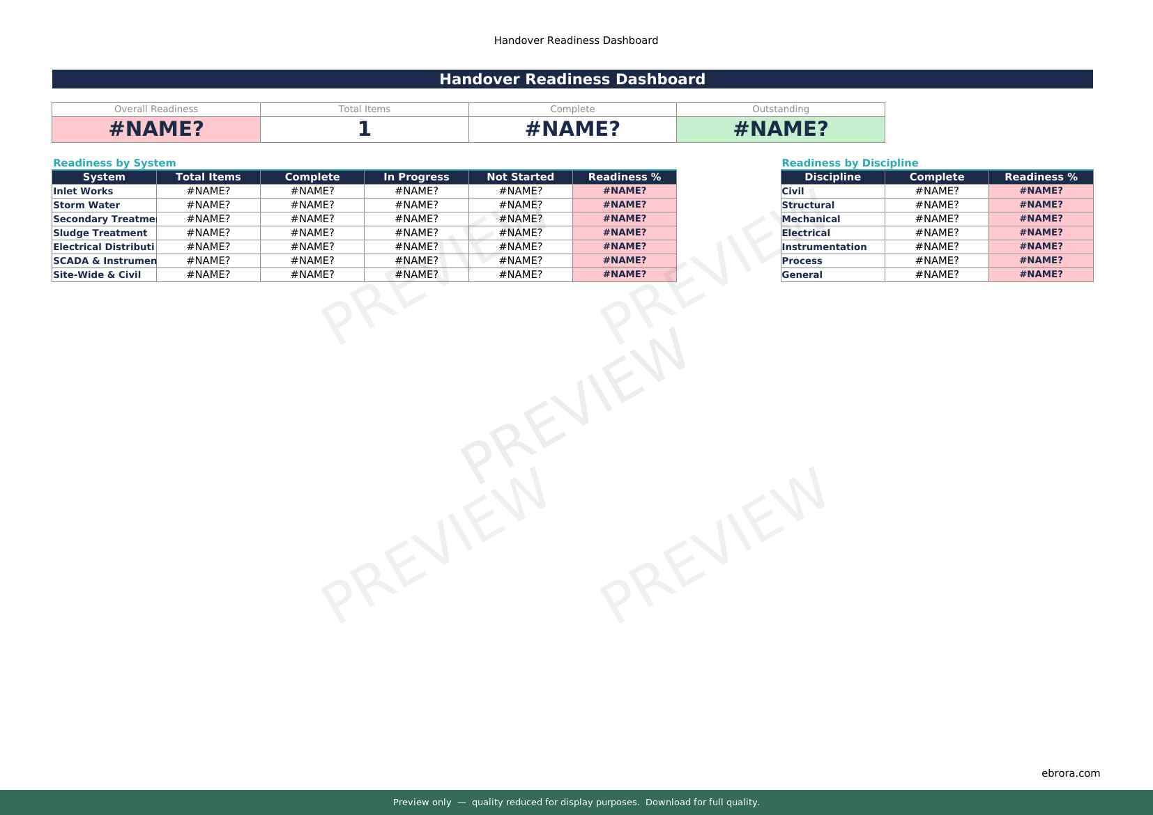 Free Excel template: Handover Readiness Dashboard. Download for UK construction sites.
