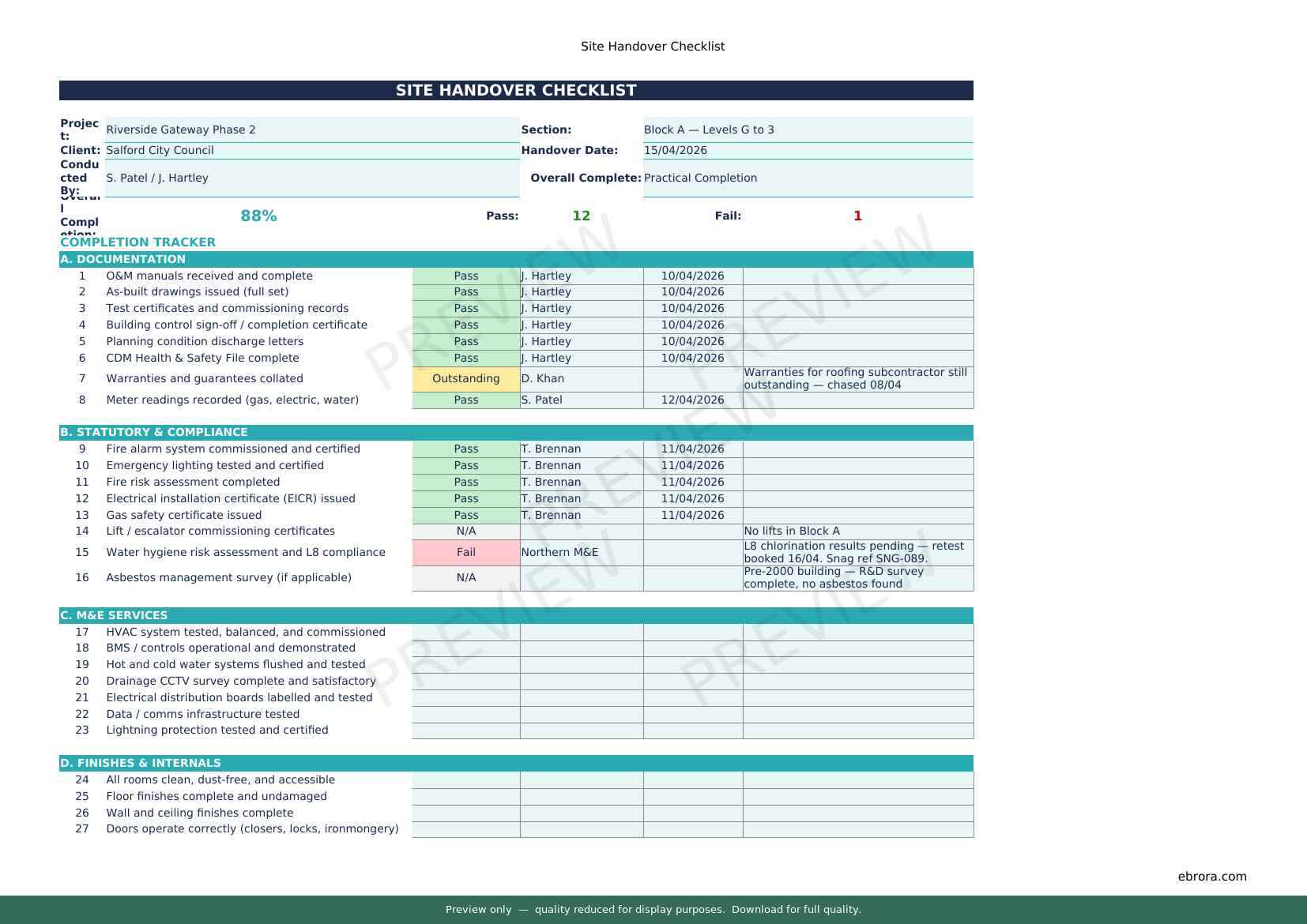 Free Excel template: Site Handover Checklist. Download for UK construction sites.