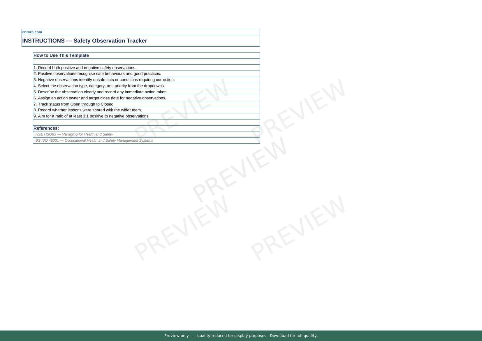 Free Excel template: Safety Observation Tracker. Download for UK construction sites.