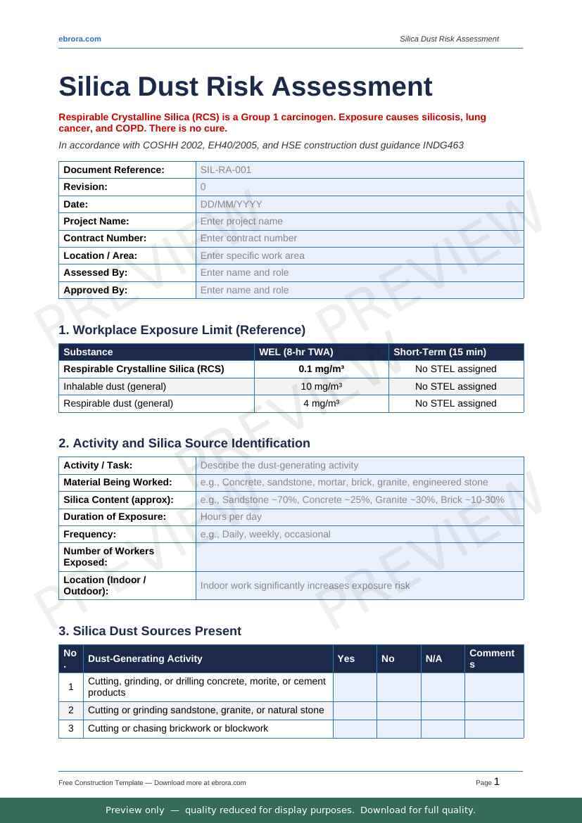 Free Word template: Silica Dust Risk Assessment. Download for UK construction sites.