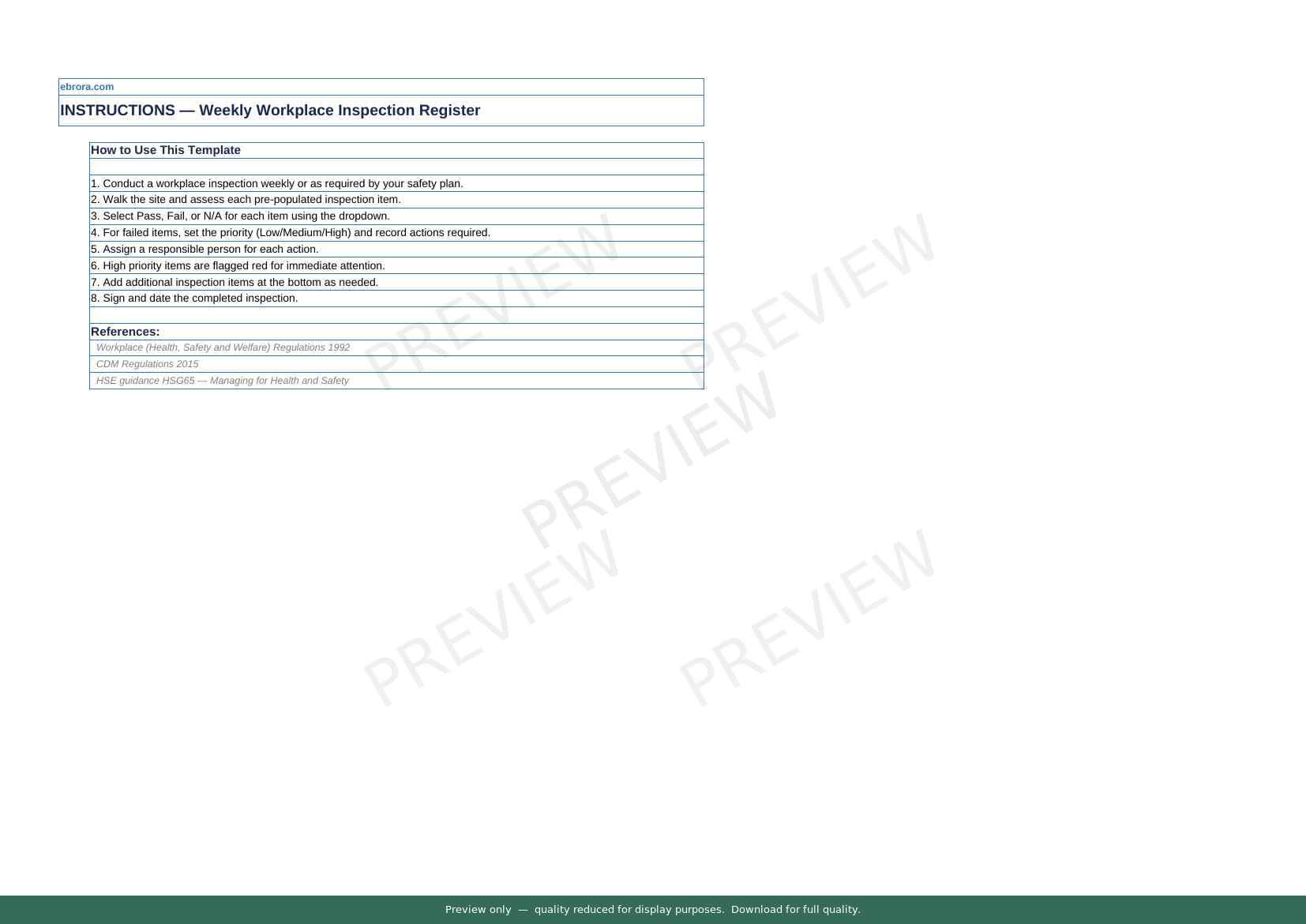 Free Excel template: Weekly Workplace Inspection Register. Download for UK construction sites.