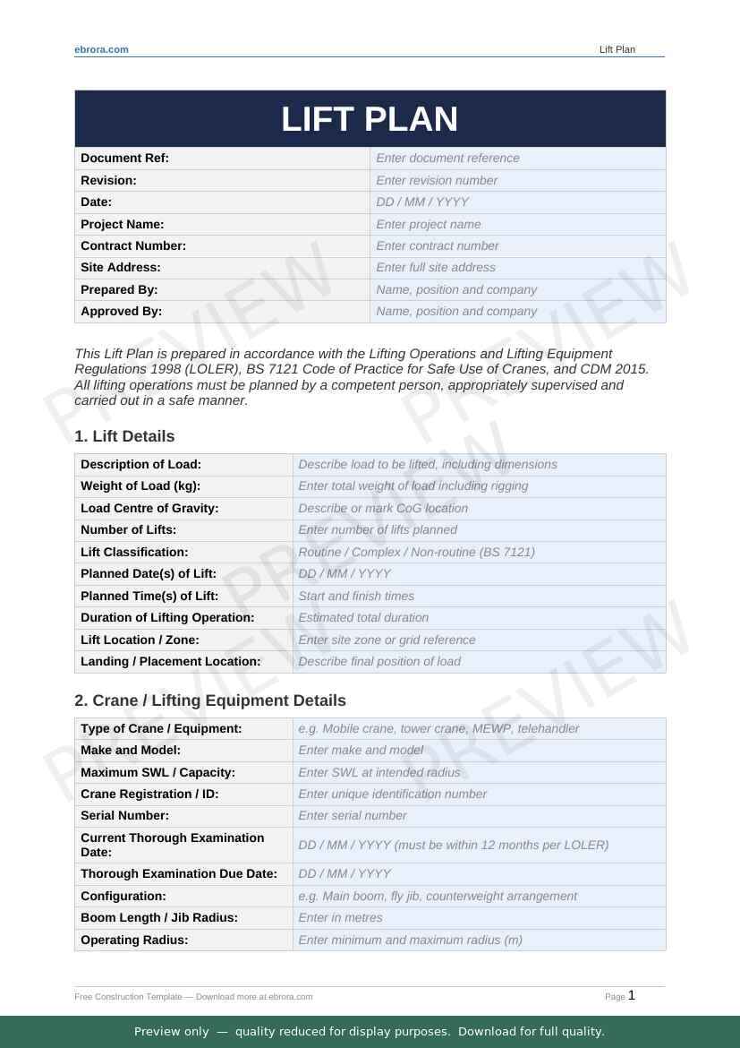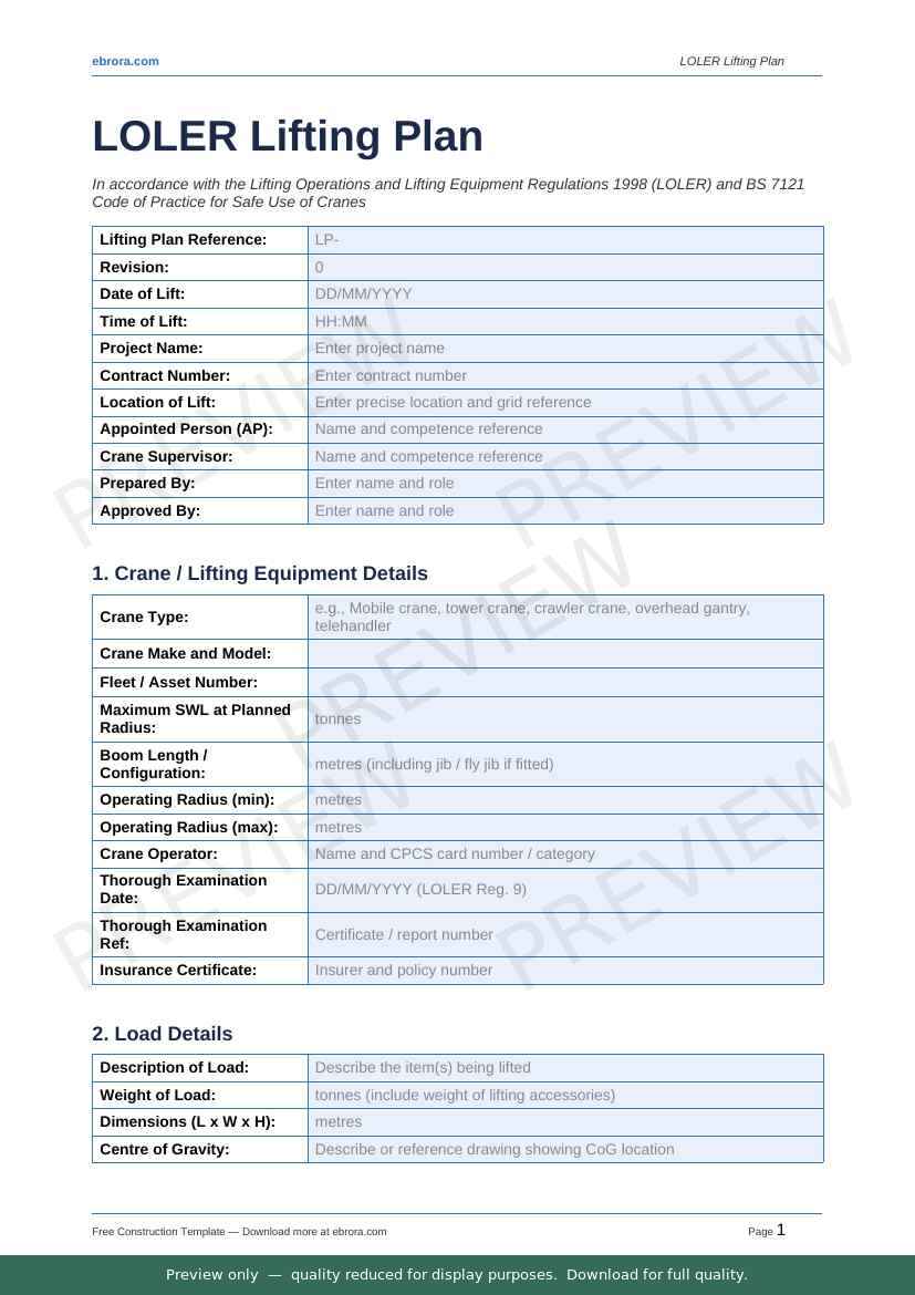 Free Word template: Loler Lifting Plan. Download for UK construction sites.