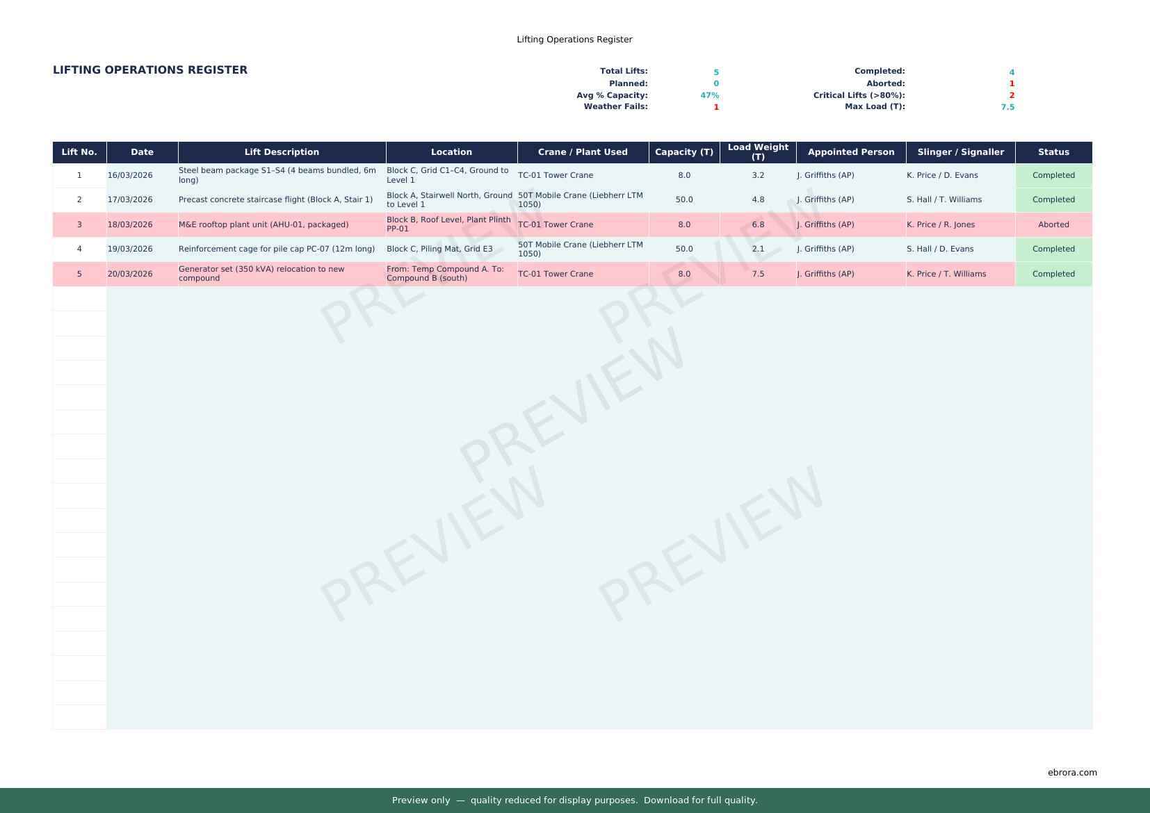 Free Excel template: Lifting Operations Register. Download for UK construction sites.