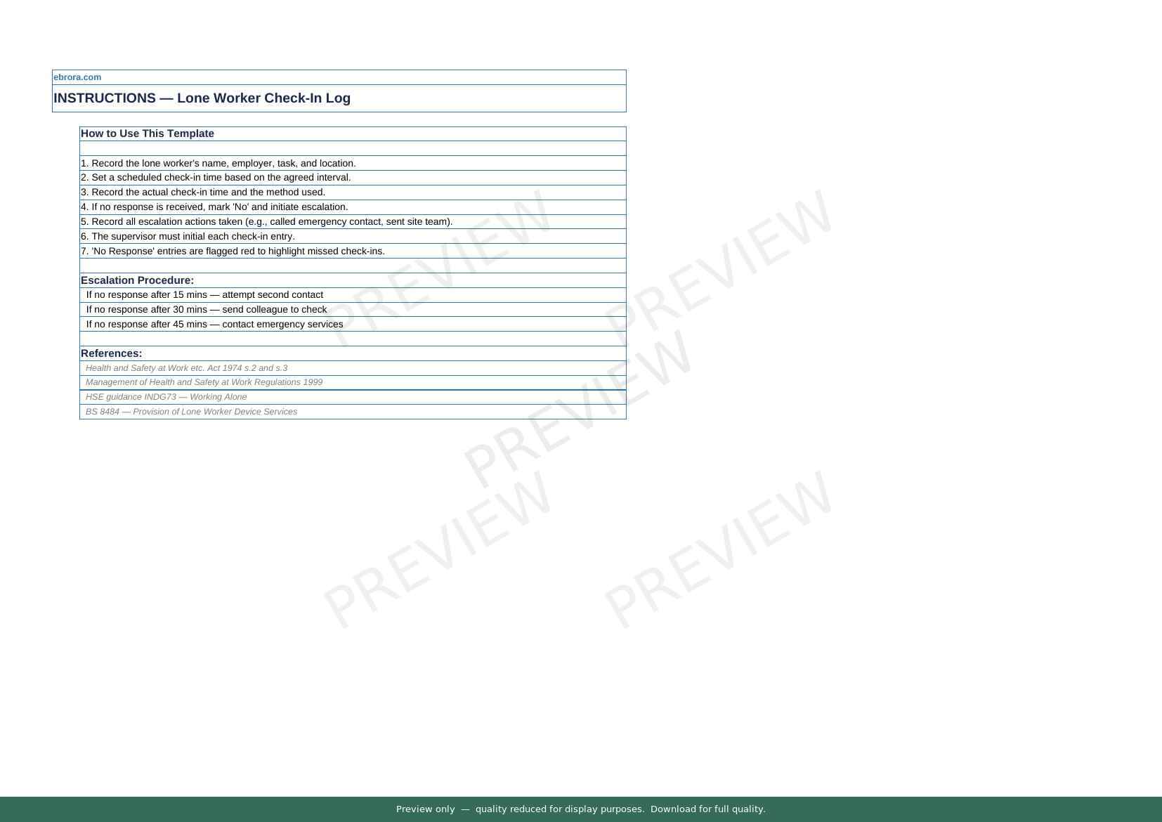 Free Word template: Lone Working Procedure and Check in Log. Download for UK construction sites.