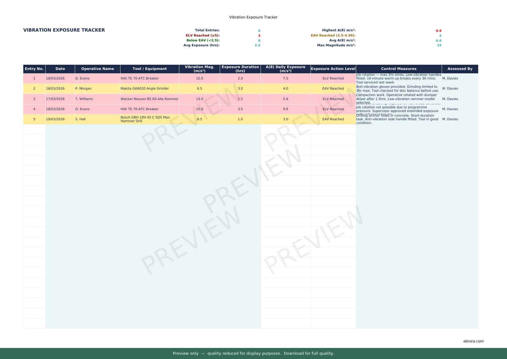 Free Excel template: Vibration Exposure Tracker. Download for UK construction sites.