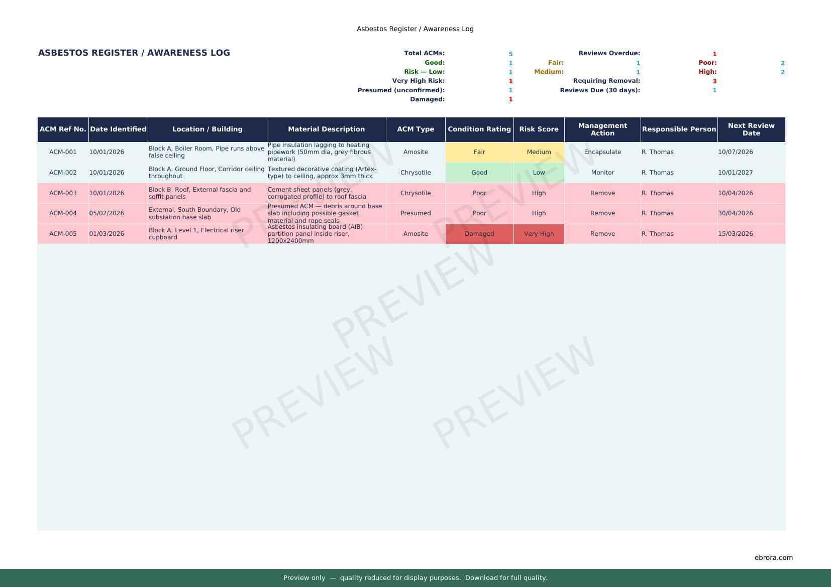 Free Excel template: Asbestos Register Awareness Log. Download for UK construction sites.