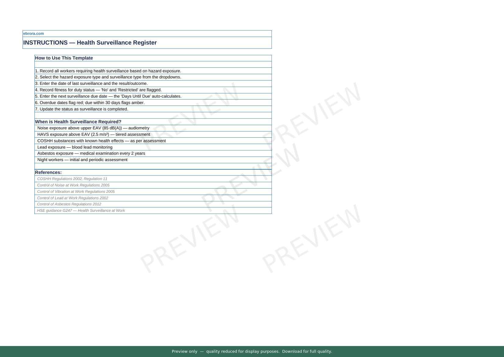 Free Excel template: Health Surveillance Register. Download for UK construction sites.