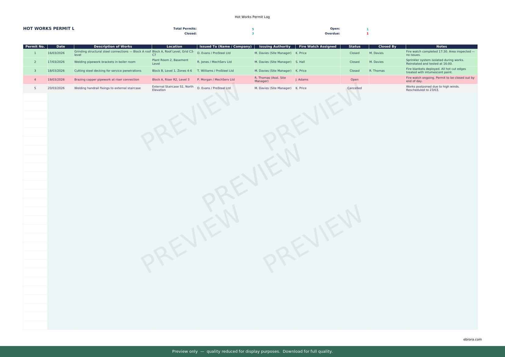 Free Excel template: Hot Works Permit Log. Download for UK construction sites.