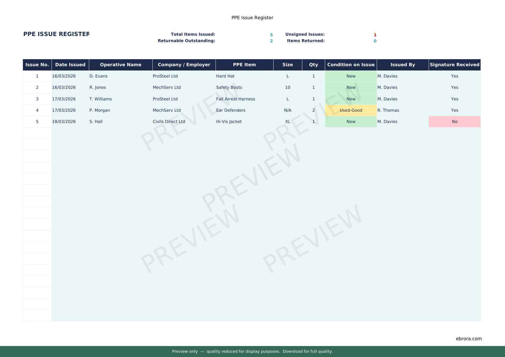 Free Excel template: Ppe Issue Register. Download for UK construction sites.