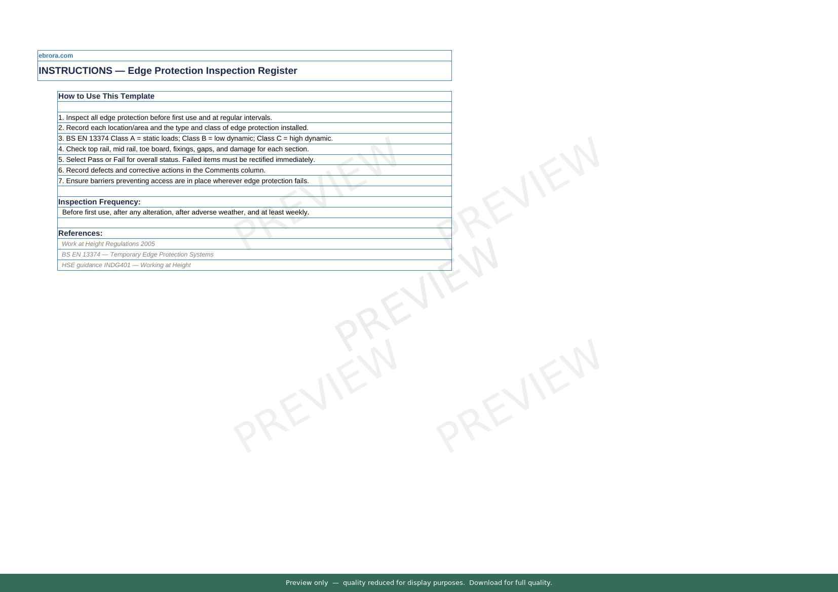 Free Excel template: Edge Protection Inspection Register. Download for UK construction sites.