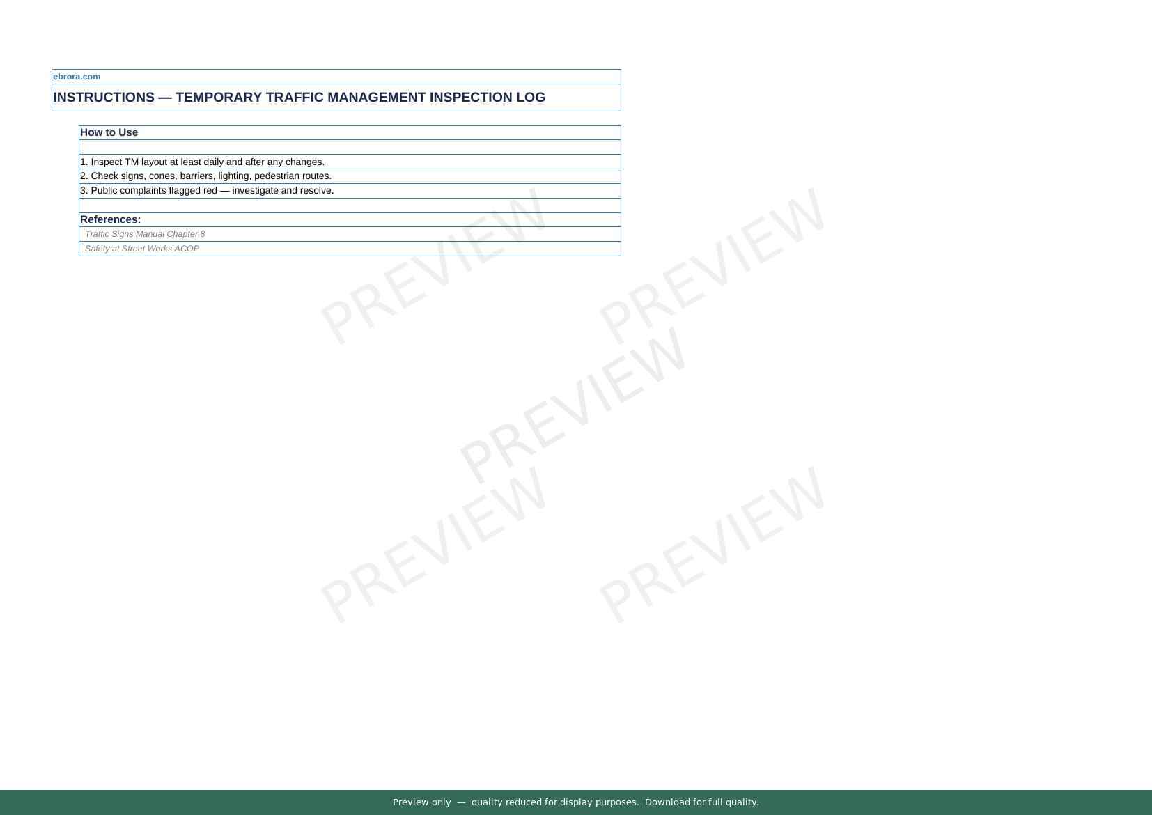Free Excel template: Temporary Traffic Management Inspection Log. Download for UK construction sites.