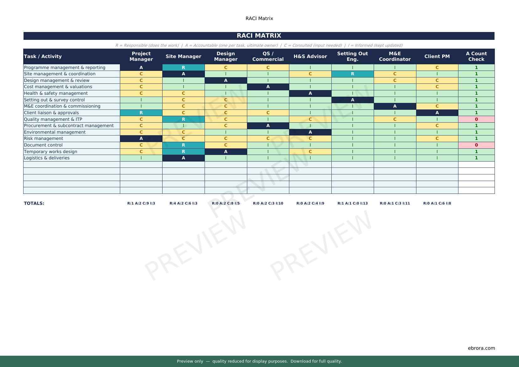 Free Excel template: Raci Matrix. Download for UK construction sites.