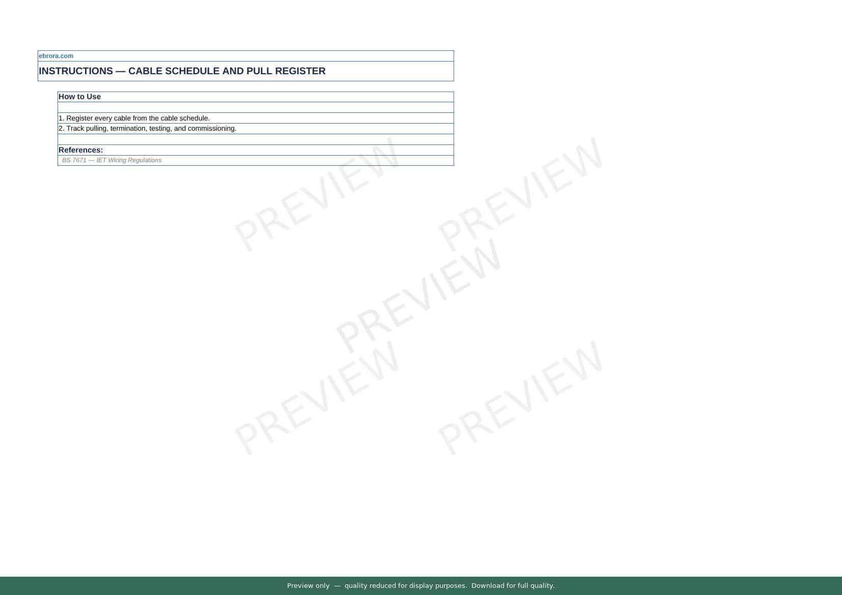 Free Excel template: Cable Schedule and Pull Register. Download for UK construction sites.