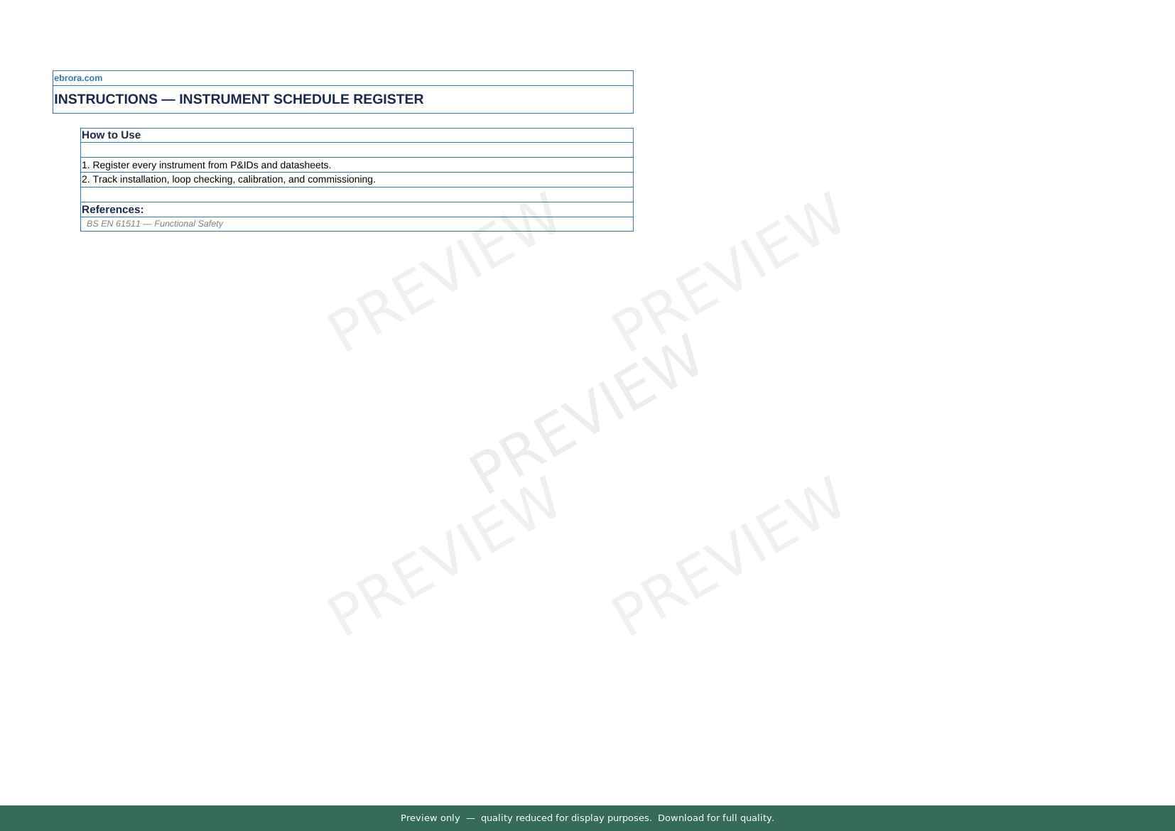 Free Excel template: Instrument Schedule Register. Download for UK construction sites.