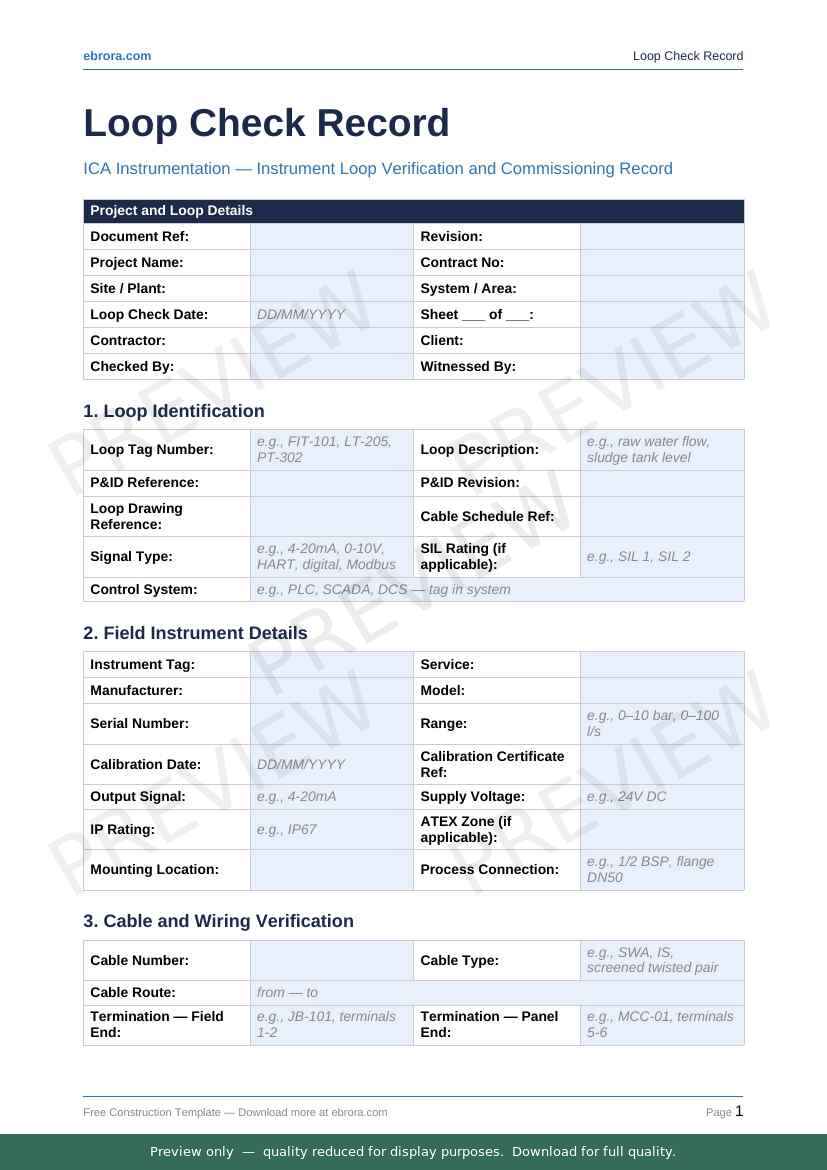 Free Word template: Loop Check Record. Download for UK construction sites.