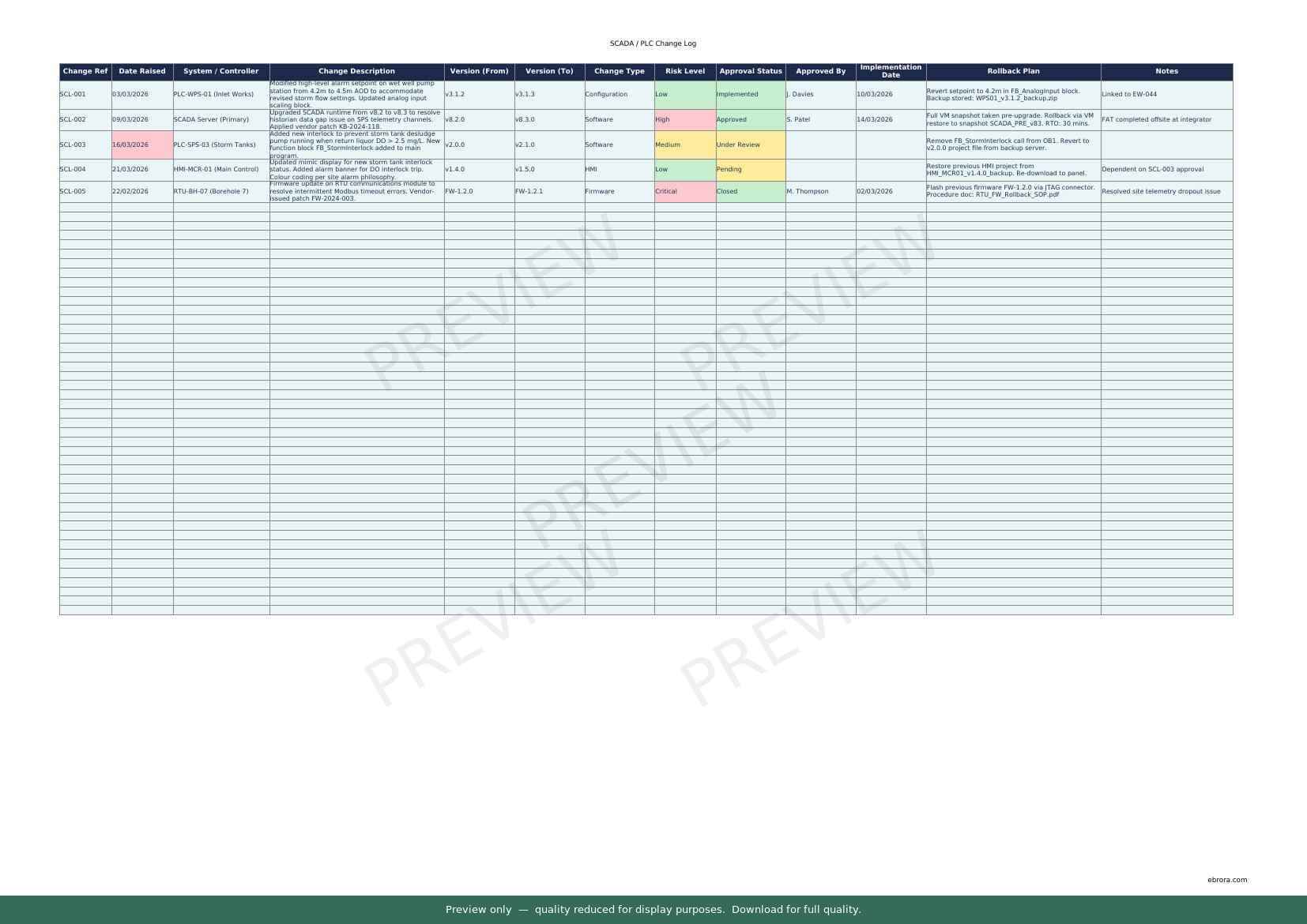 Free Excel template: Scada Plc Change Log. Download for UK construction sites.