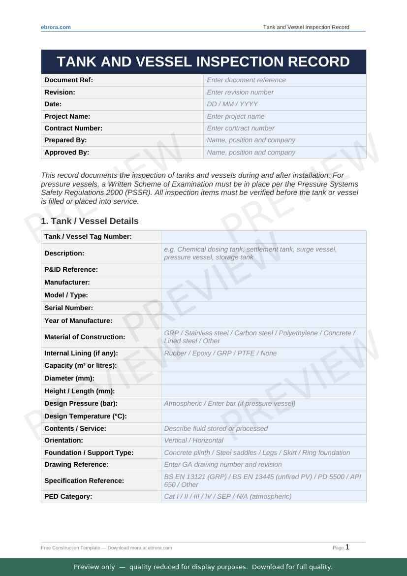 Free Word template: Tank and Vessel Inspection Record. Download for UK construction sites.