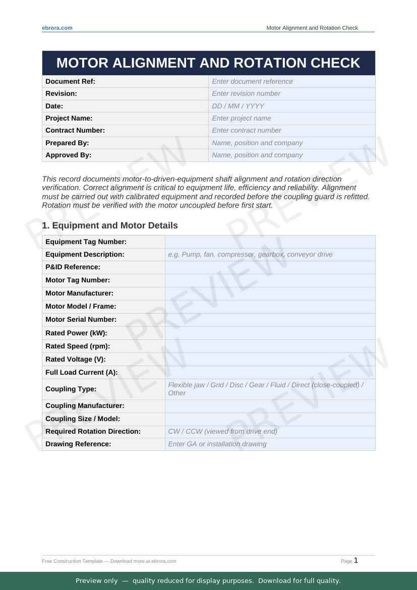 Free Word template: Motor Alignment and Rotation Check. Download for UK construction sites.