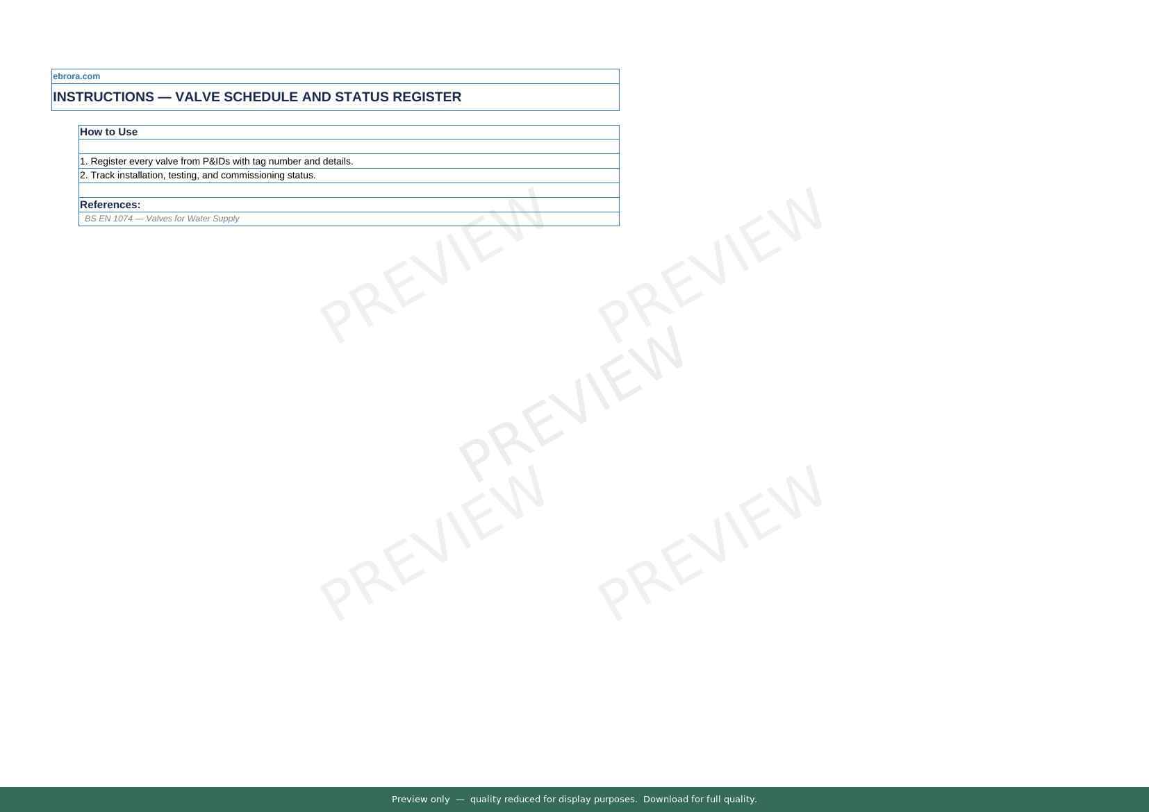 Free Excel template: Valve Schedule and Status Register. Download for UK construction sites.