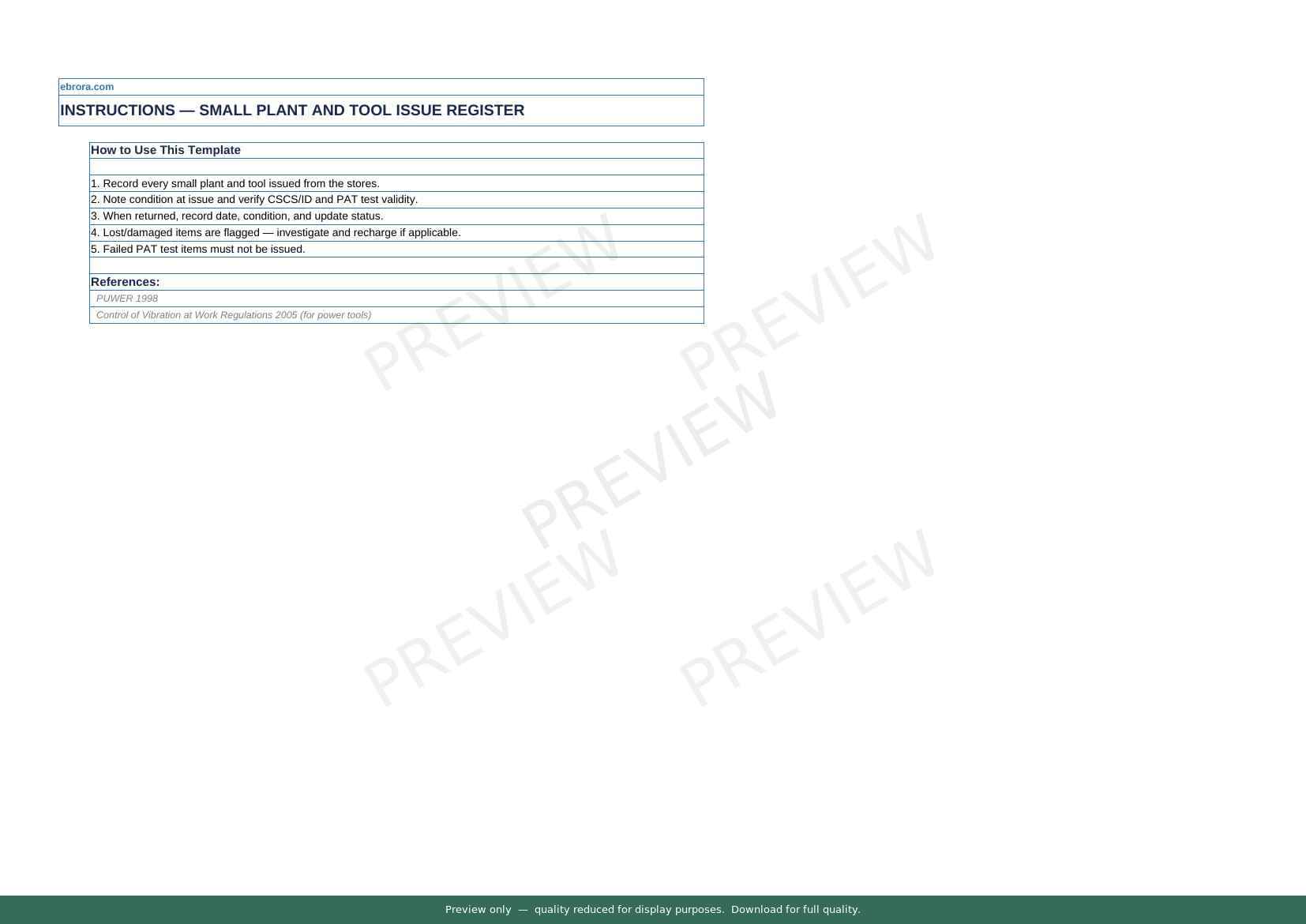 Free Excel template: Small Plant and Tool Issue Register. Download for UK construction sites.