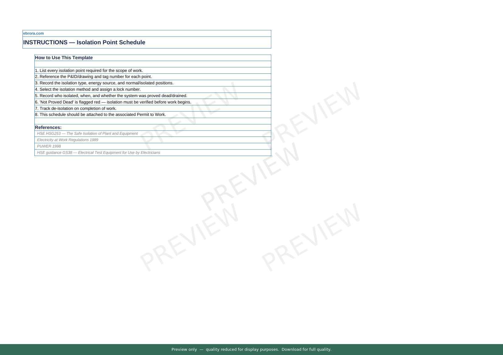 Free Excel template: Isolation Point Schedule. Download for UK construction sites.