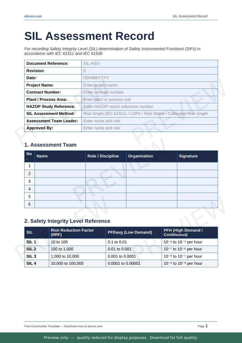 Free Word template: Sil Assessment Record. Download for UK construction sites.