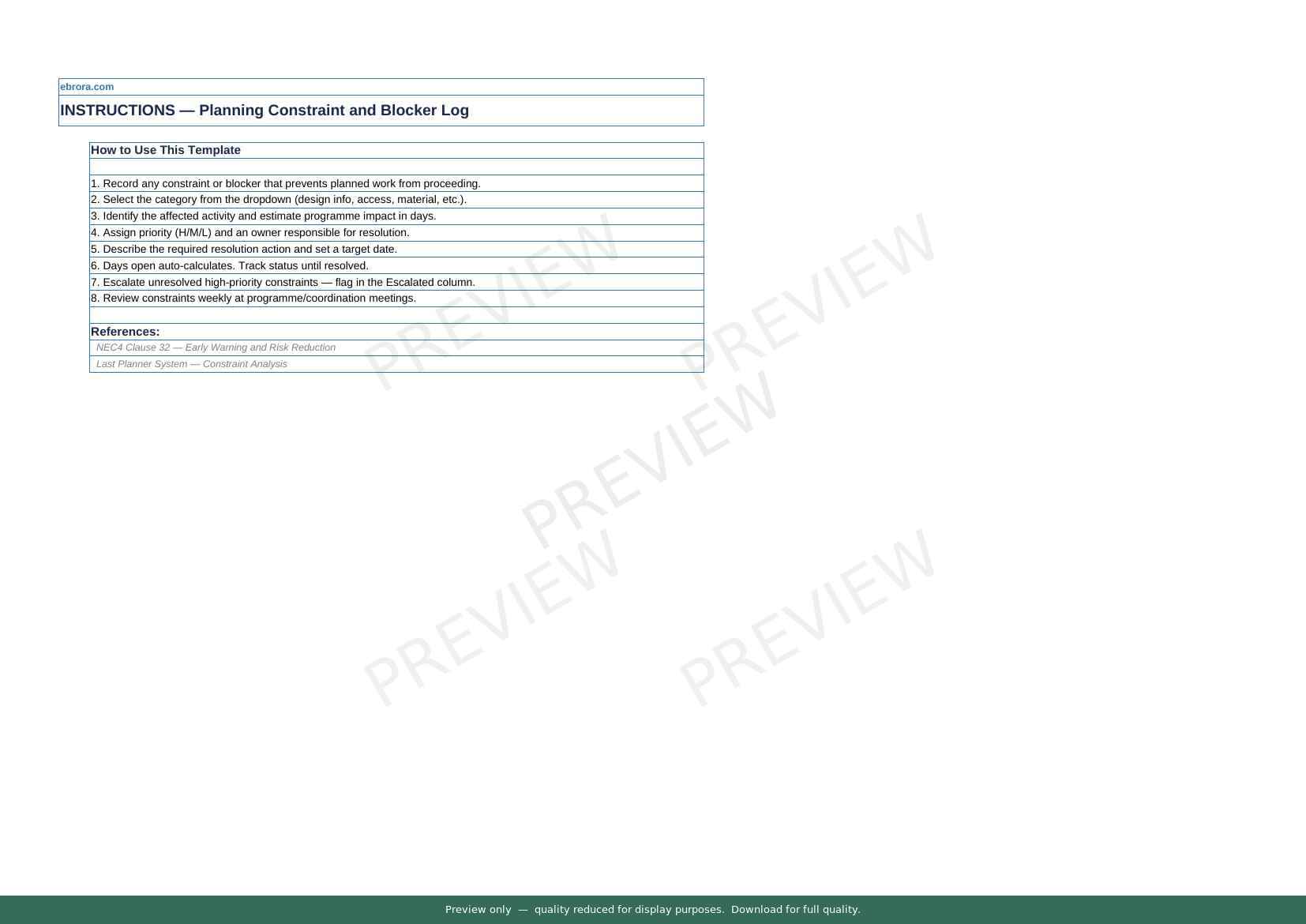 Free Excel template: Planning Constraint and Blocker Log. Download for UK construction sites.