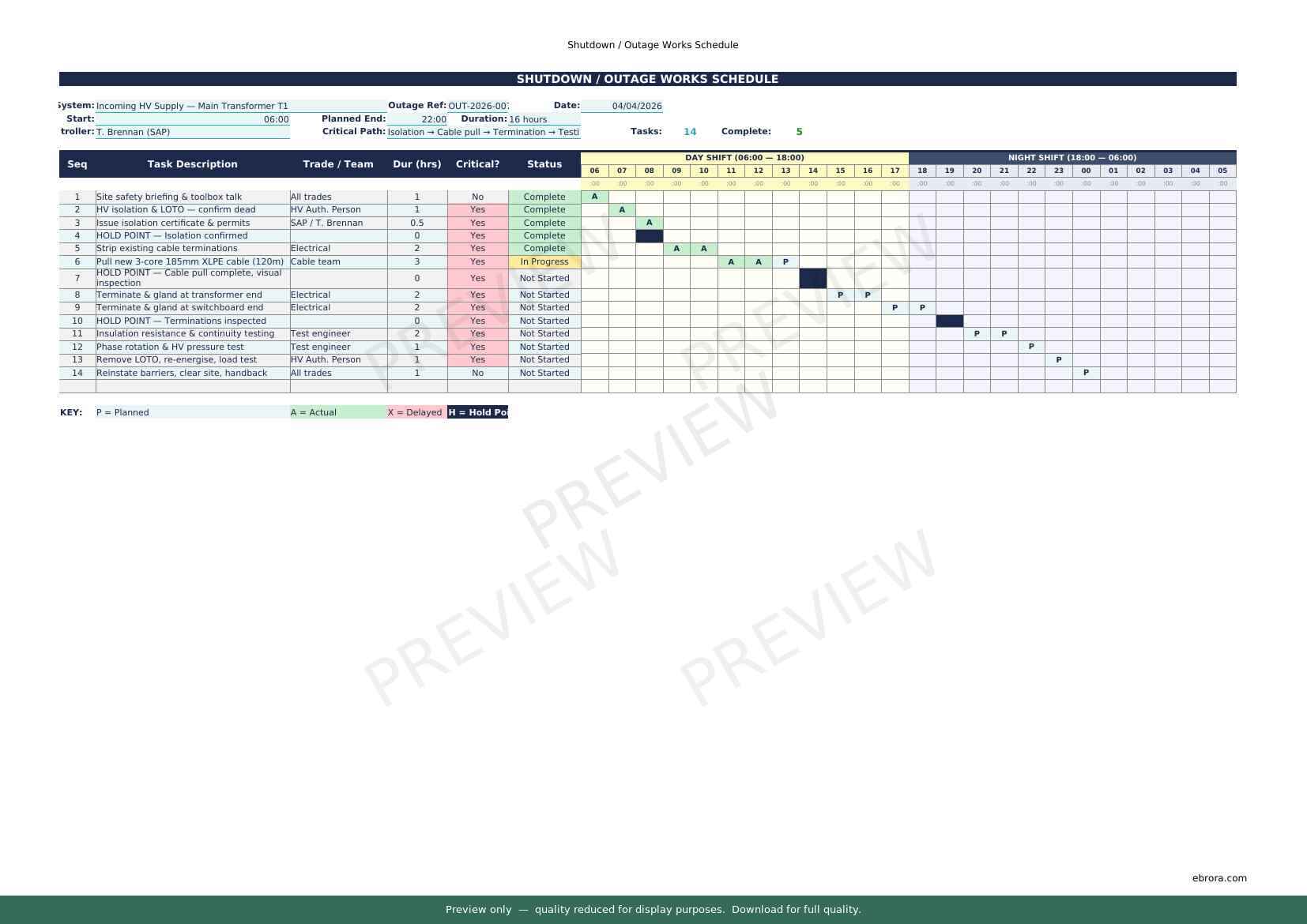 Free Excel template: Shutdown Outage Works Schedule. Download for UK construction sites.